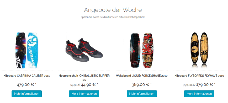 Der Kunde kann sich zu einem Artikel aus dem Angebot der Woche auf dessen Detailseite informieren. Dahin gelangt er, indem er die Schaltfläche Mehr Informationen drückt. Es ist nicht möglich, den Artikel direkt in den Warenkorb zu legen.