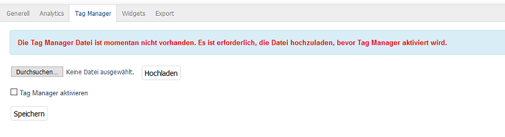 Im OXID eShop wurde der Tag Manager integriert, so dass die definierten Tags in den Headern der einzelnen Seiten des Shops enthalten sind und auf Besucheraktionen reagieren können. Dafür muss die bei econda generierte Tag Manager Datei dem Shop hinzugefügt werden. Verwenden Sie die Schaltfläche Durchsuchen…, um die Datei auf Ihrem Rechner auszuwählen und übertragen sie diese anschließend mit der Schaltfläche Hochladen in den Shop.