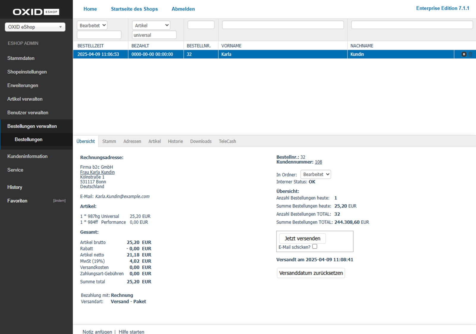 Gleichzeitig wird der Shopbetreiber per E-Mail über den Auftrag informiert.