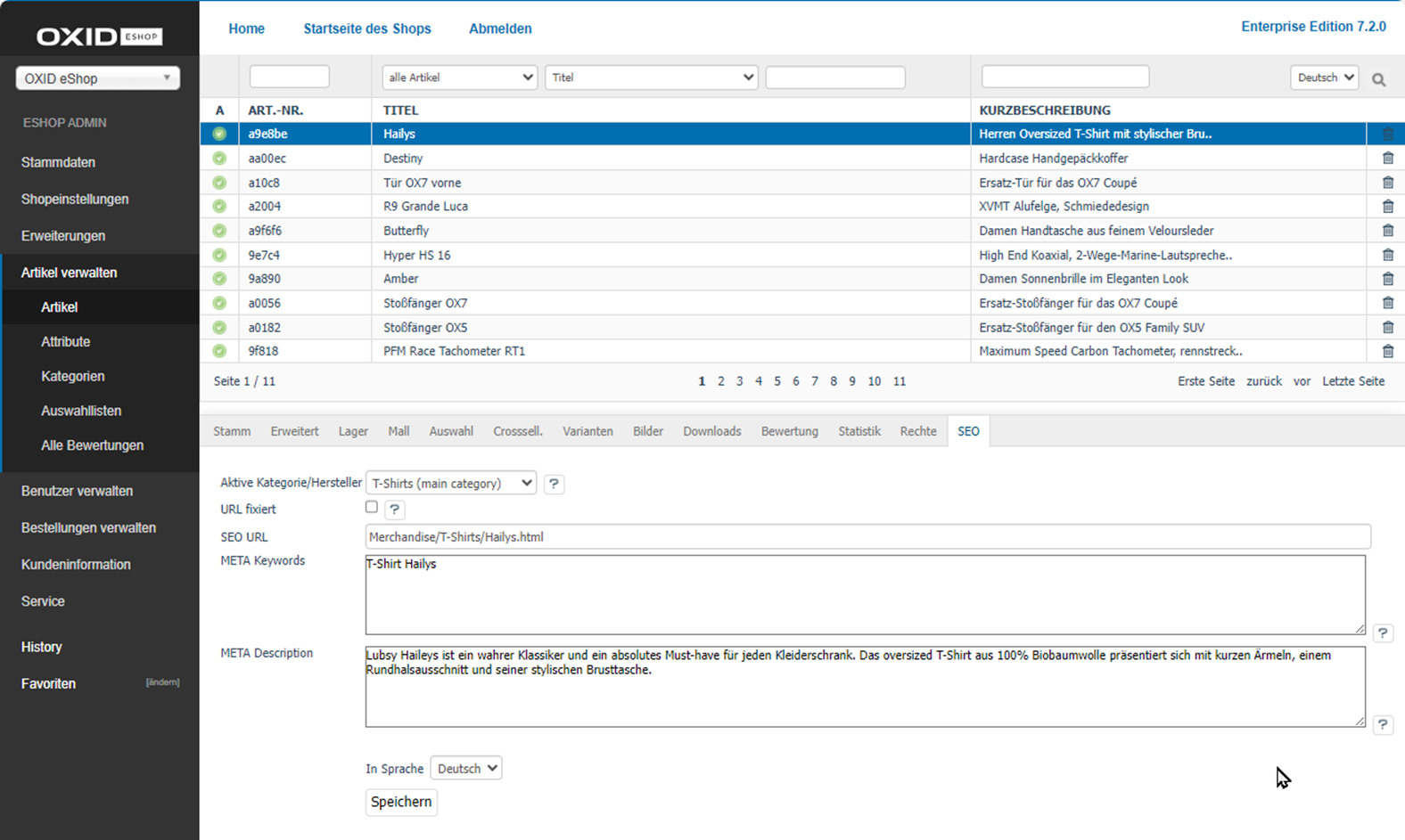 Ändern sich Daten eines Artikels, wie beispielsweise der Titel oder die Kategoriezuordnung, wird die SEO URL neu berechnet. Sie können das für eine ausgewählte URL deaktivieren, indem dieses Kontrollkästchen angehakt wurde. Eine bestehende SEO URL bleibt dadurch unverändert.