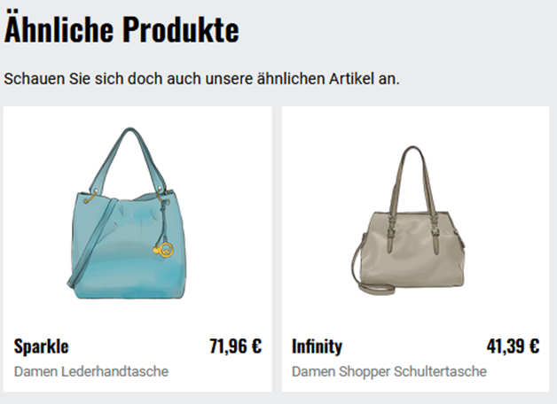 Nutzen Sie Attribute, um ähnliche Artikel zu erkennen und auf der Detailseite zu präsentieren (Abb.: Ähnliche Produkte anzeigen).
