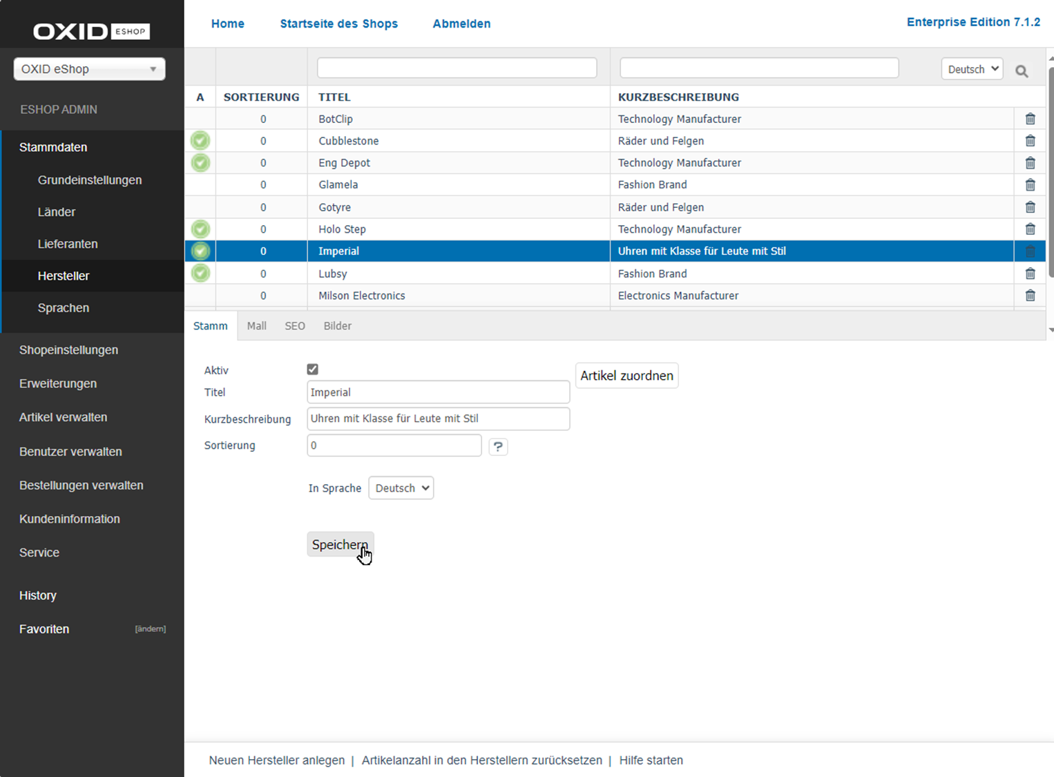 Stellen Sie sicher, dass die Marke aktiv ist und speichern Sie Ihre Eingaben.