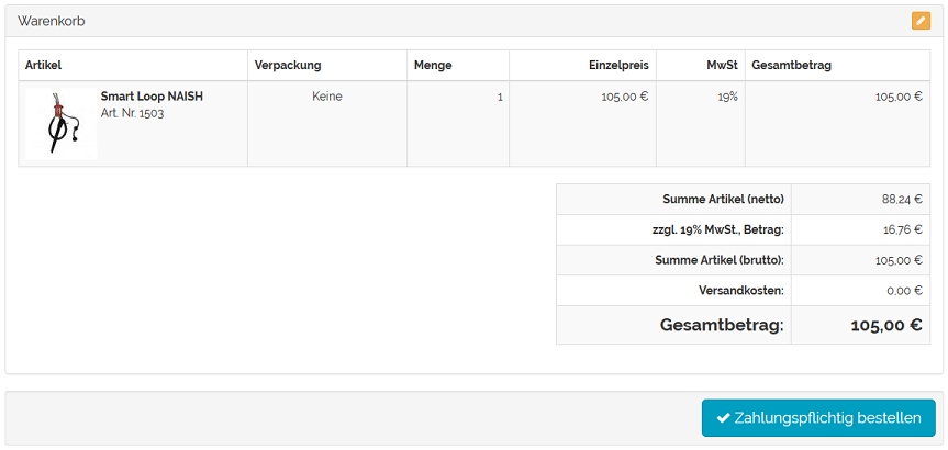 Abb.: Warenkorb mit Artikeln unter 80 € Warenwert