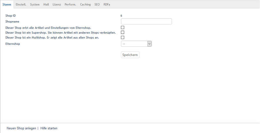 Die Shops erhalten automatisch eine Nummer, beginnend mit der Shop-ID 1 für den Hauptshop.