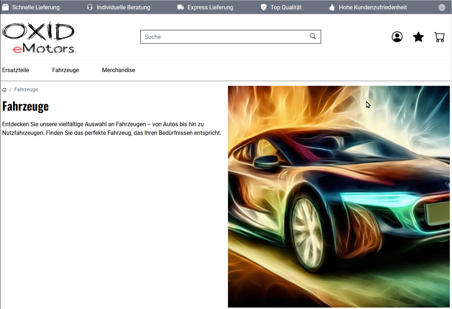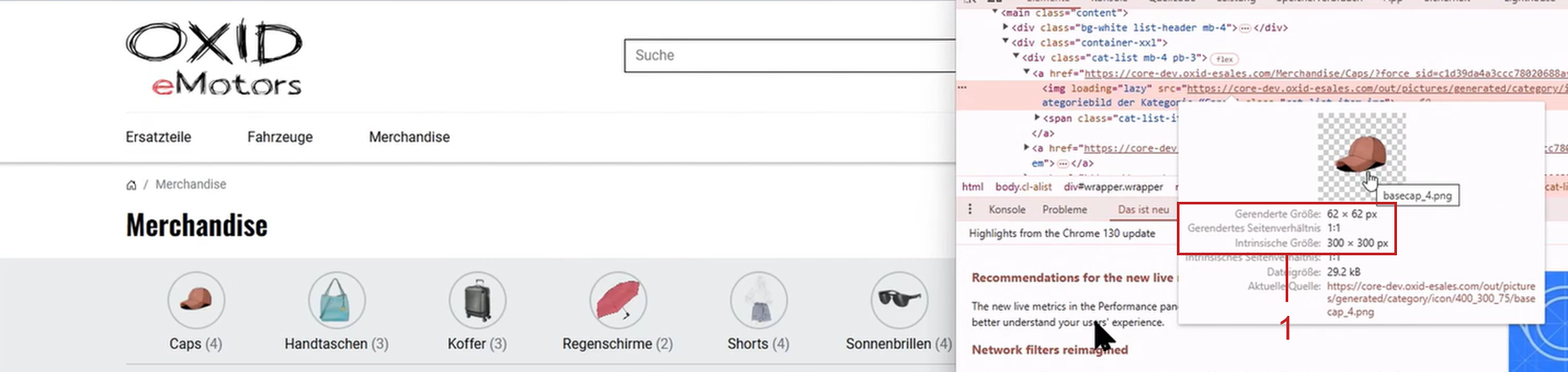 In our demo store, the images for displaying subcategories (Fig.: Category image of a subcategory) are downsized to a size of 400x300 pixels (Fig.: Example: Set maximum image size 400x300 pixels, item 1). This is the size that the browser would download on the end device.