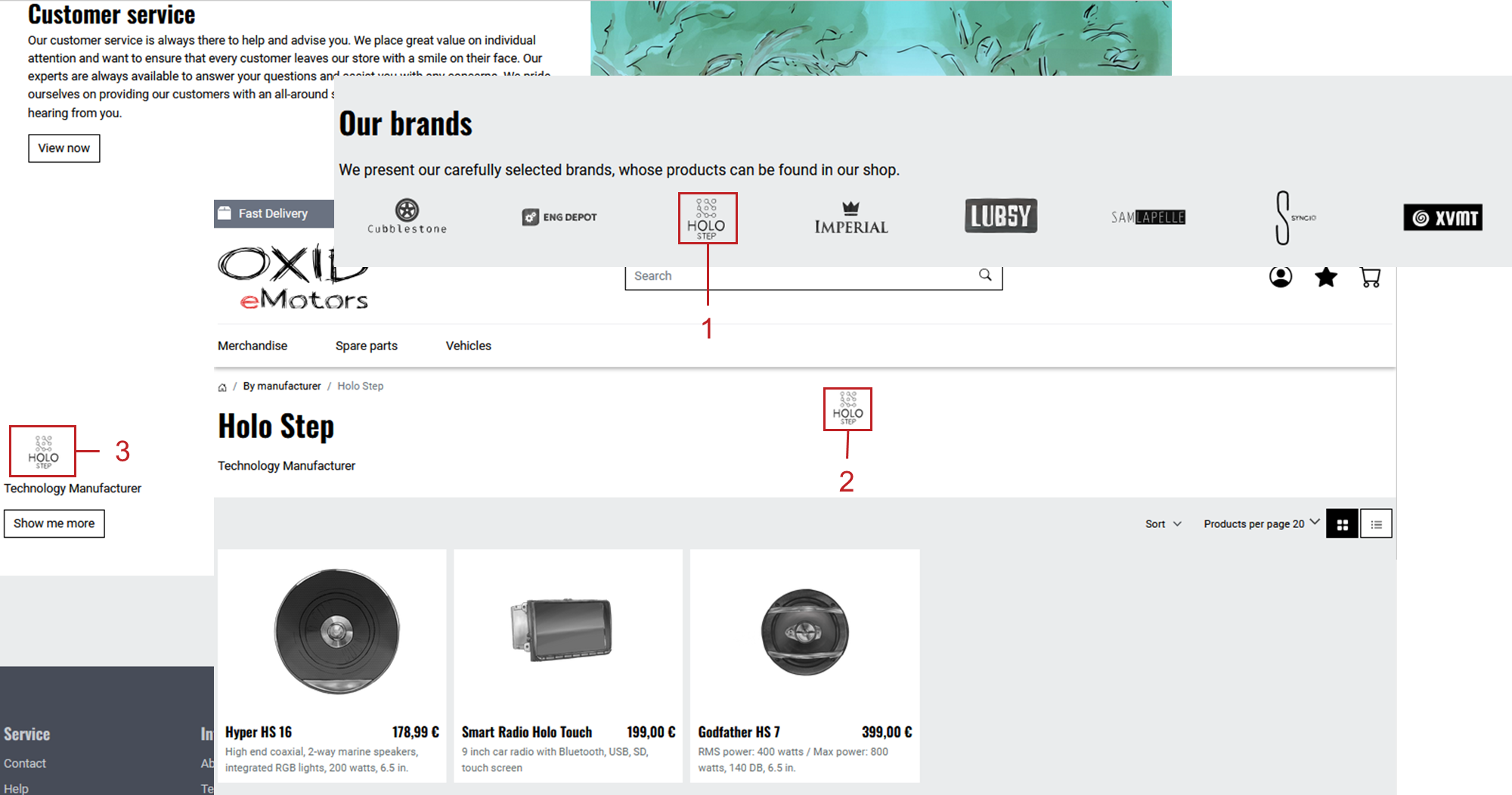 on the product detail page (Fig.: Manufacturer/brand logo in various functions, item 1)