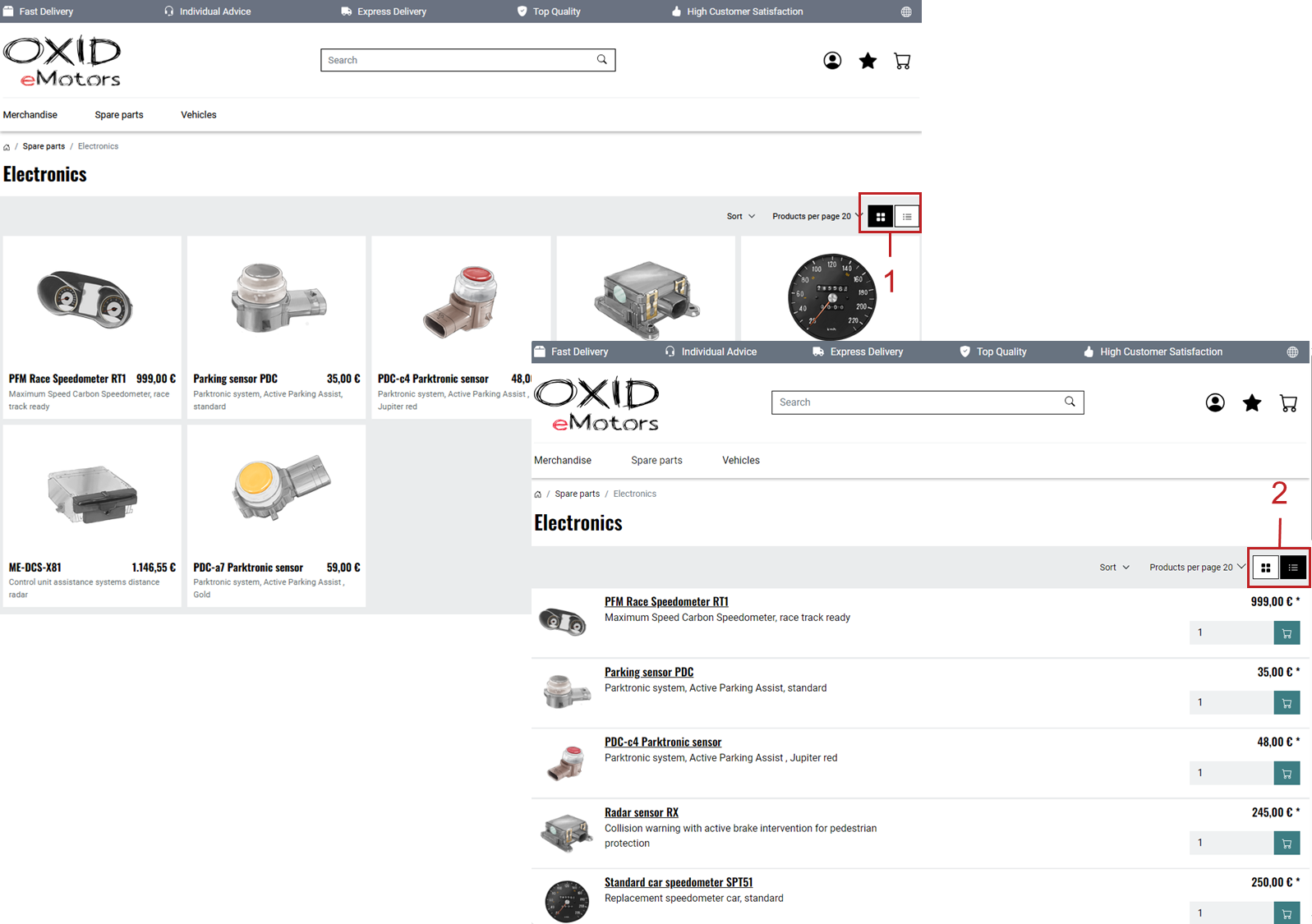 in the shopping cart (Fig.: Icon in various functions, item 2)