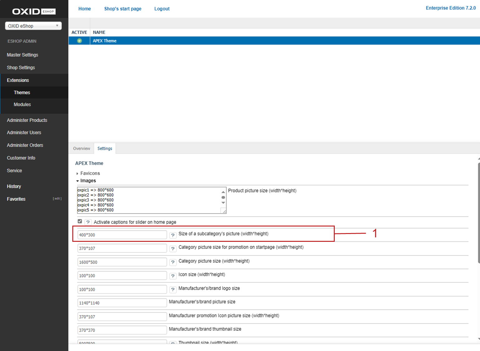 The actual :emphasis:` displayed` size of the images for products and categories as well as the manufacturer and brand logos depends on the design of your OXID eShop. You define these values with your CSS.