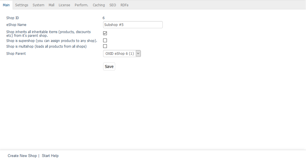 Inheritance is an important part of the Mall function. It takes place when you check the box Shop inherits all inheritable products and settings from the parent shop when creating a new shop. Besides the products, attributes, selection lists, shipping methods, shipping cost rules, manufacturers, distributors and other elements will be passed onto the new shop. Categories are not inherited.