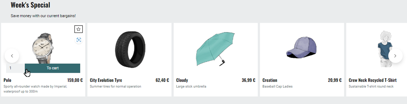 From the offer, the customer can call up the detail page of an advertised item. They can also add the item directly to the shopping cart using the Add to cart button.