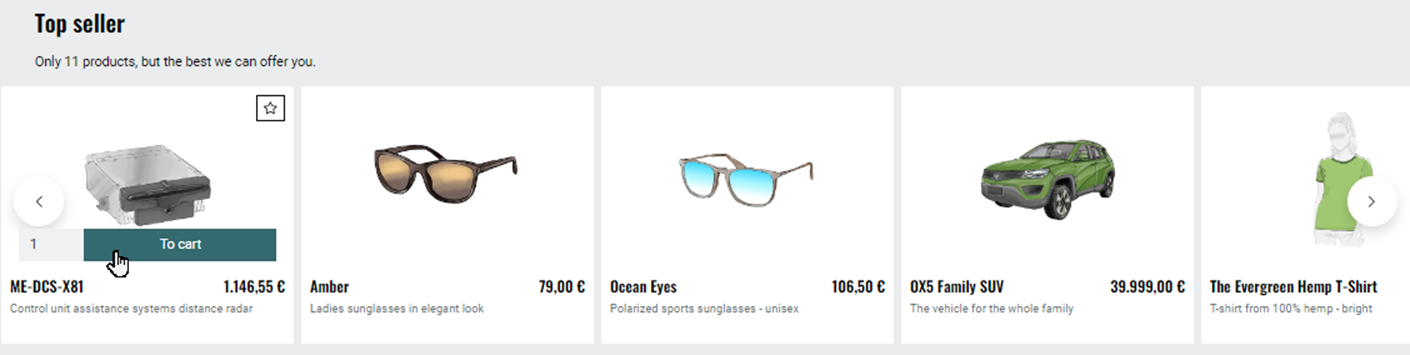 Further down on the start page is the store’s best-selling items (top sellers) (Fig.: Displaying the promotion type Top seller).