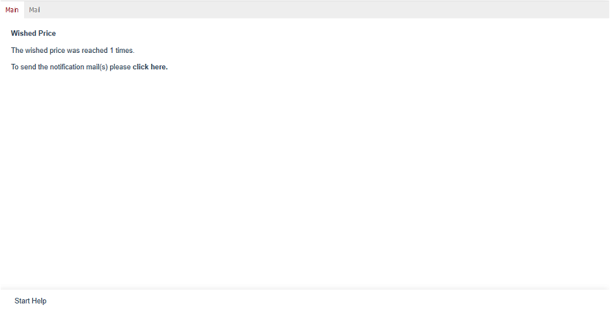 If at least one requested price condition is met, a message appears offering to send the notifications. Click the displayed link to start the email dispatch process.