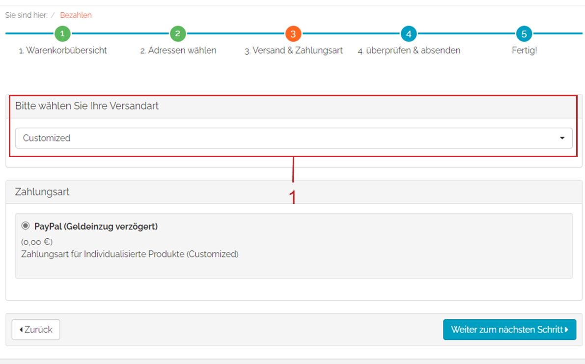 Stellen Sie sicher, dass mindestens eine Versandart für die Bezahlung mit der Zahlungsart PayPal angelegt ist.