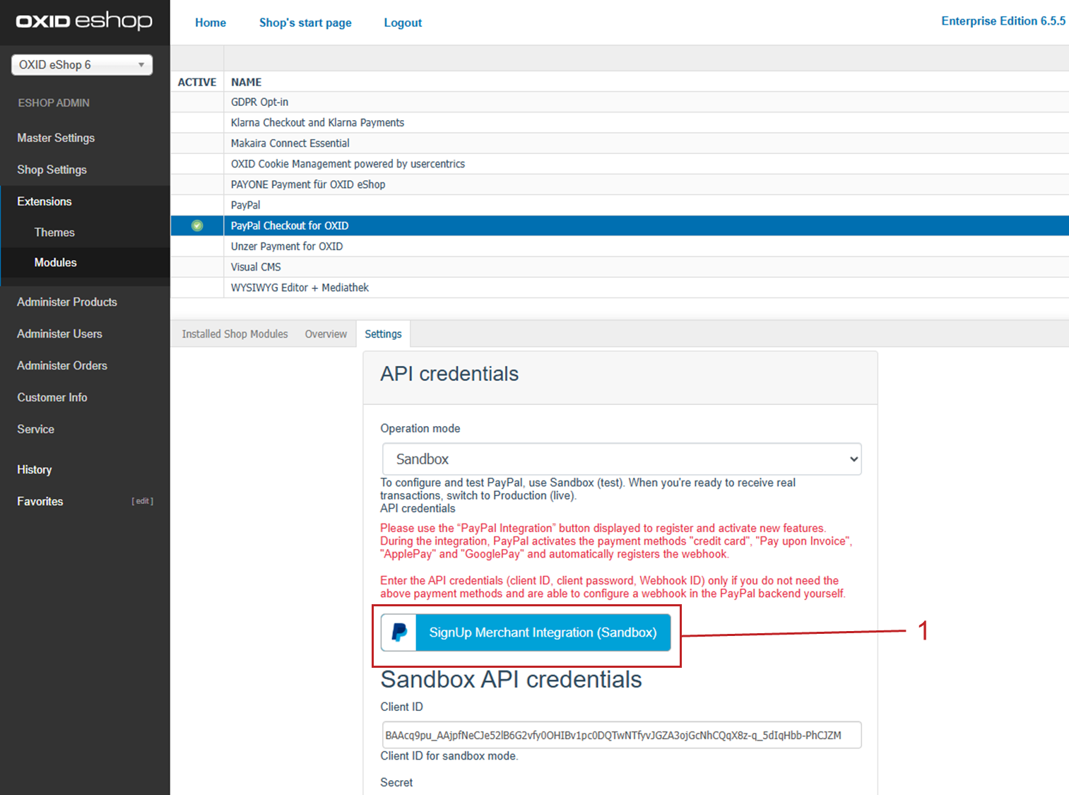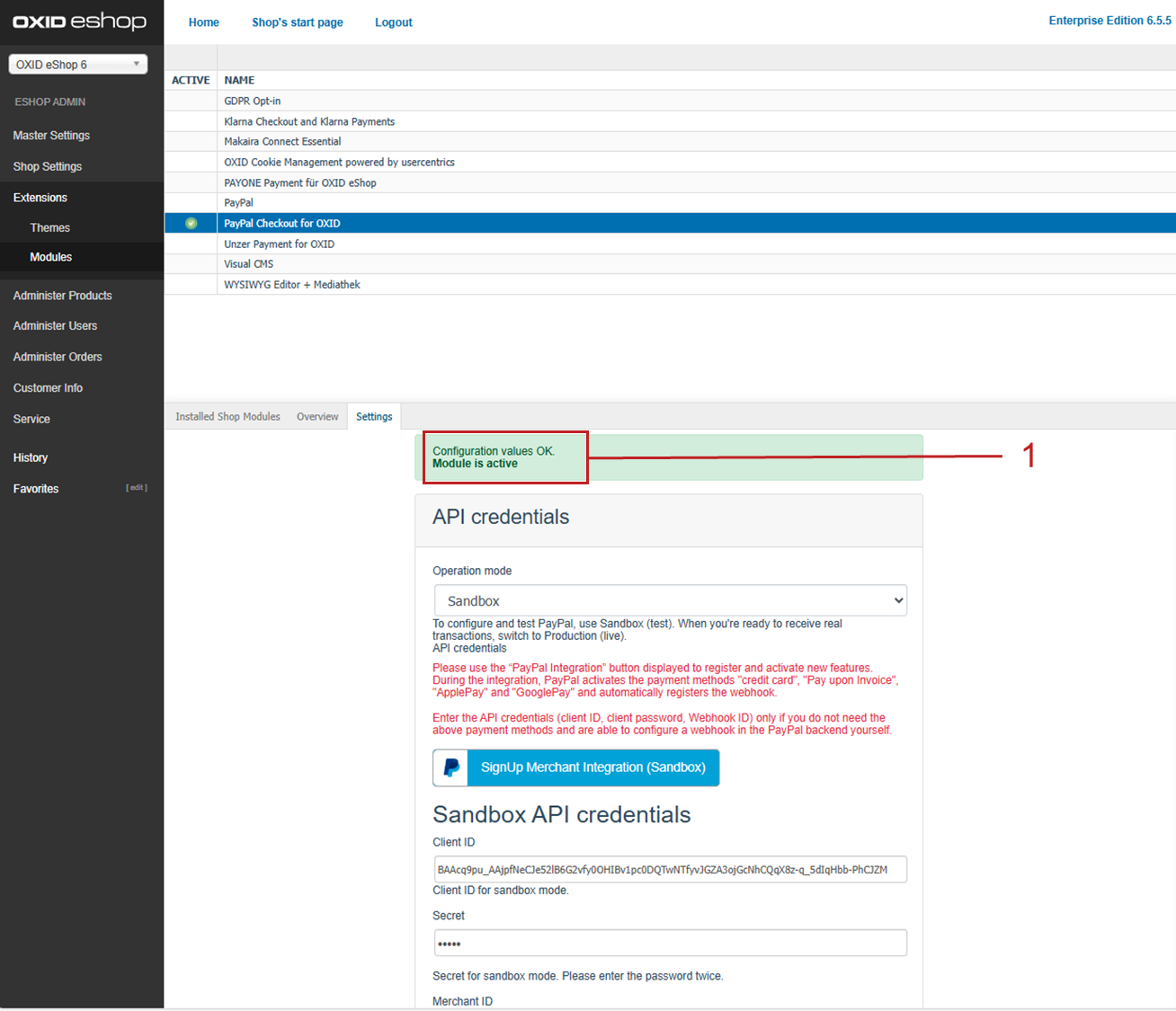 Operating PayPal Checkout in subshops with the OXID eShop Enterprise Edition