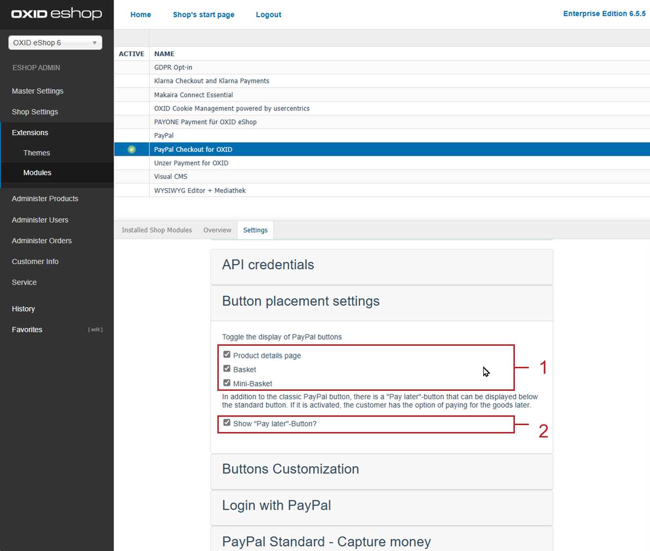 To administer existing orders, both modules, PayPal Checkout and PayPal for example, must be active at the same time.