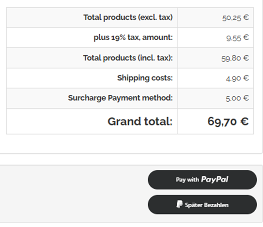 To enable payments with PayPal Express, use so-called pseudo shipping costs. In this way you ensure that the value of the shopping basket corresponds approximately to the value that is collected from the customer’s PayPal account at checkout.