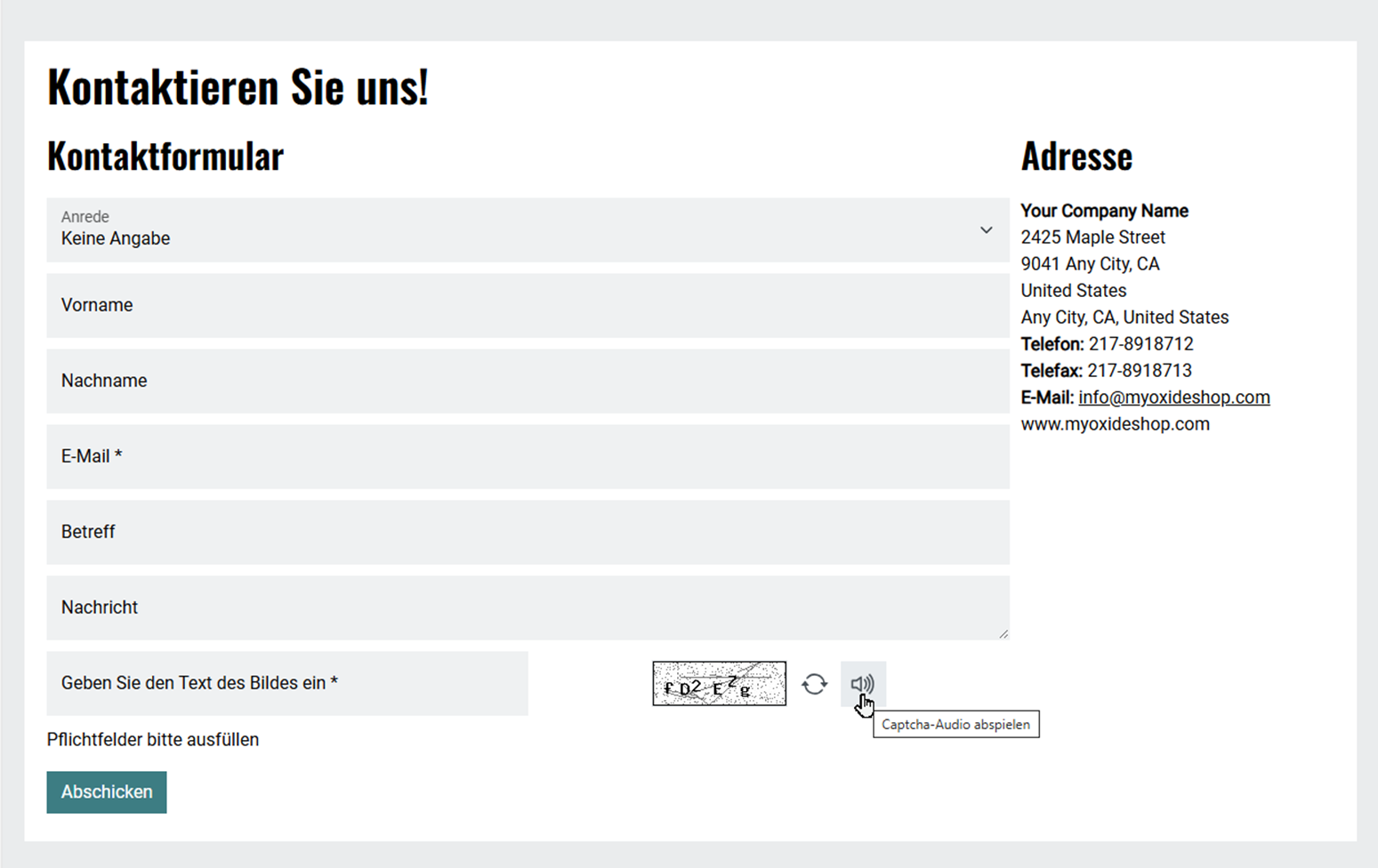 Der CAPTCHA-Mechanismus im OXID eShop schützt Formularbereiche vor automatisierten Bot-Angriffen.