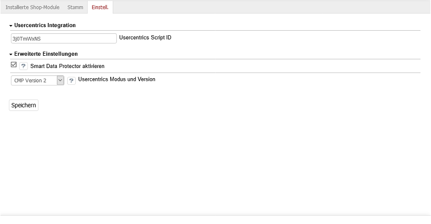 Die wichtigste Moduleinstellung ist die Usercentrics Script ID.