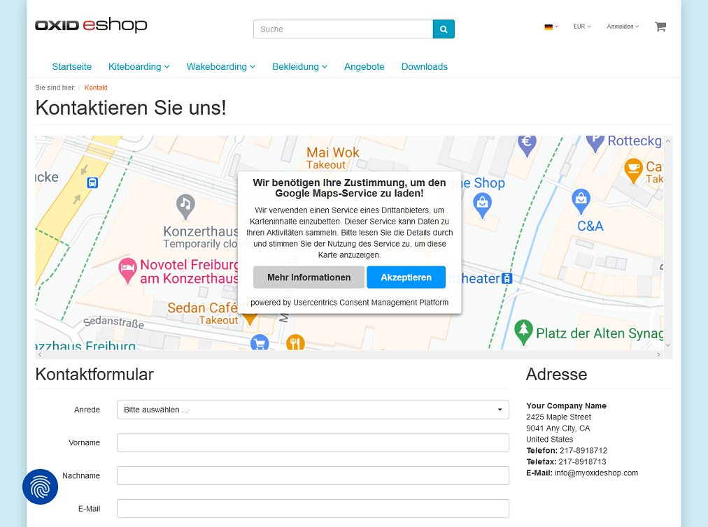 Beim allerersten Aufruf des OXID eShop wird dem Benutzer standardmäßig ein Banner angezeigt, auf dem er allen Privatsphäre-Einstellungen zustimmen, diese ablehnen oder nach seinen Vorgaben anpassen kann.