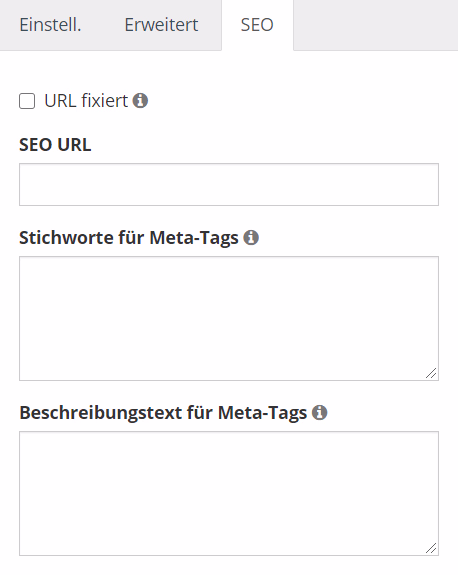 Dies verhindert, dass eine SEO URL neu berechnet wird, wenn z. B. der Titel einer Kategorie geändert wird. Wenn aktiv, wird somit die alte SEO URL beibehalten.