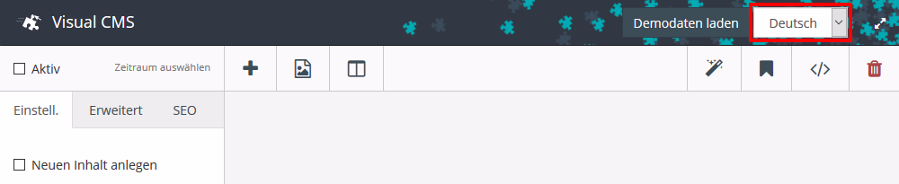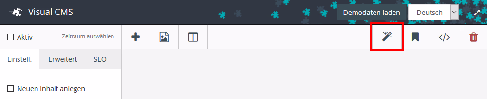 Über die Schaltfläche Inhalt laden, wird der aktuell ausgewählte CMS-Inhalt in Visual CMS geöffnet.