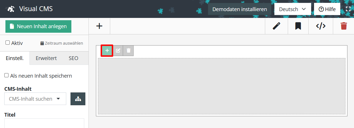 Den zu bearbeitenden CMS-Inhalt laden