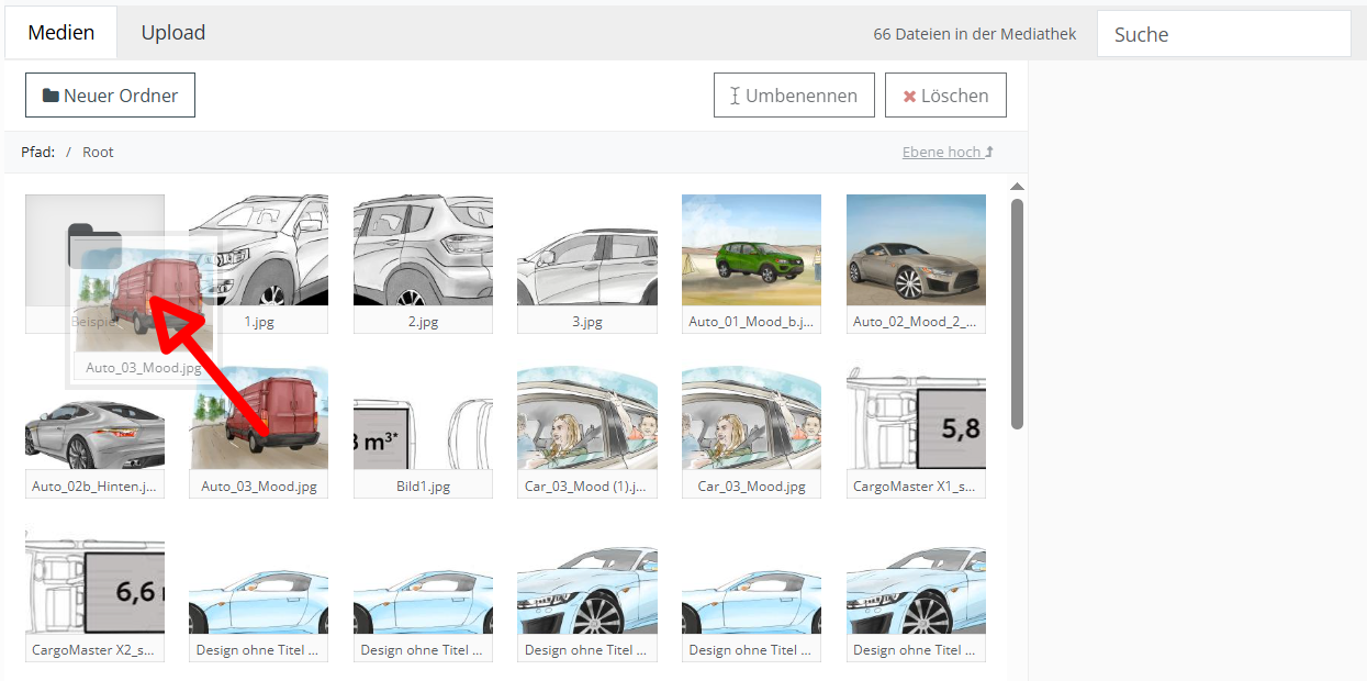 Aktuell können Dateien in Ordner verschoben, jedoch nicht wieder herausgenommen werden.