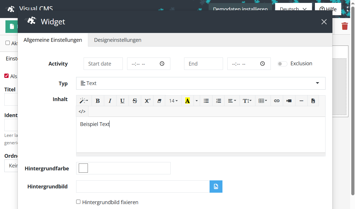 Der einfachste und schnellste Weg, um eine CMS-Seite mit Inhalt zu füllen, ist über das Hinzufügen eines Text-Widgets: