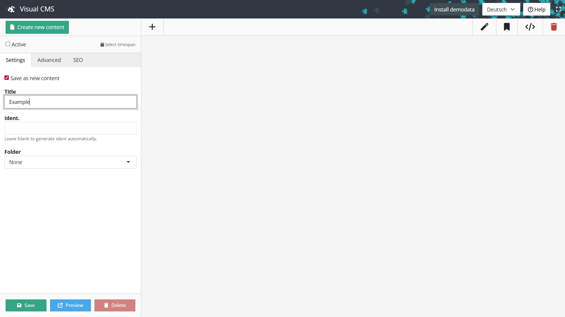 The English version of this Visual CMS documentation serves only as a basis and for developers and does not contain all details. More comprehensive documentation can be found in the German documentation.