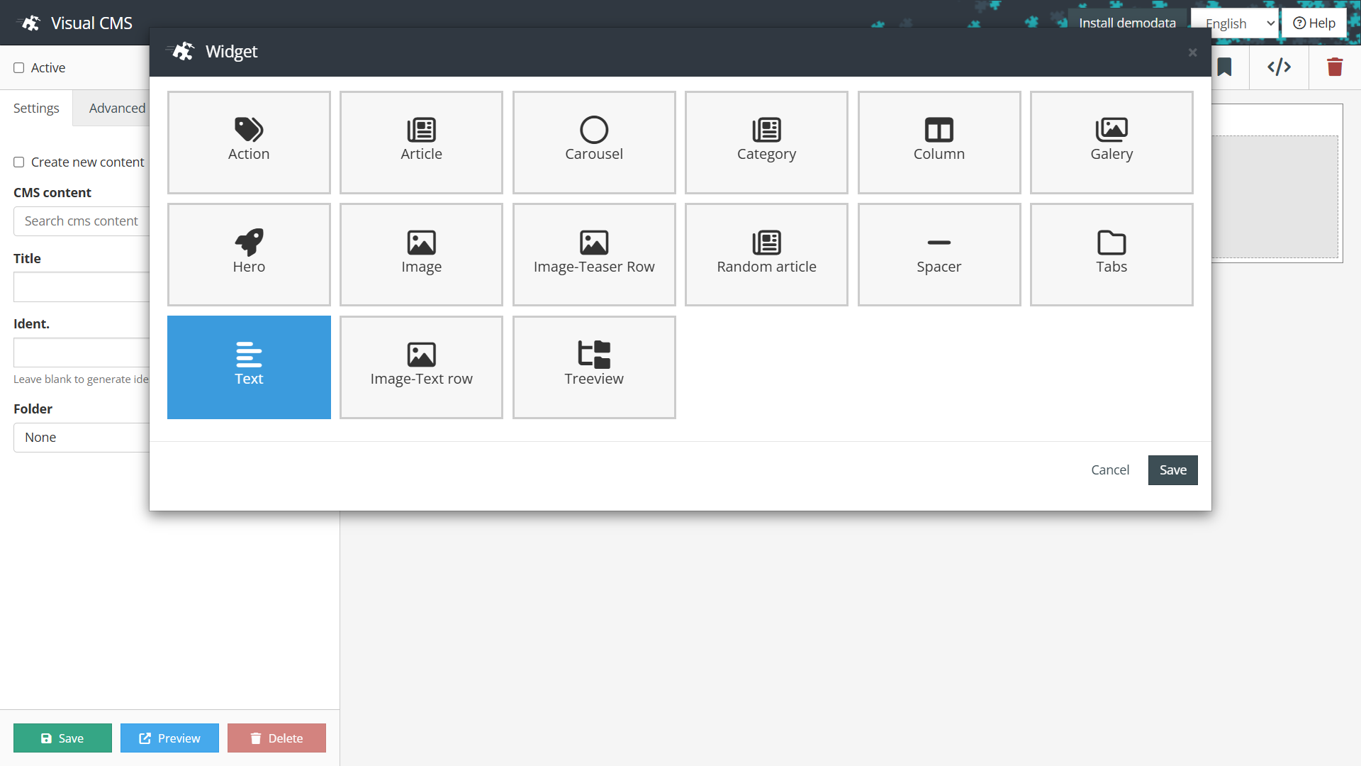 CMS-pages can be changed by adding or editing widgets. The Visual CMS automatically generates a text widget with the page content for CMS pages, which are edited for the first time using the editor. The Visual CMS allows you to edit CMS pages in a fast and comfortable manner. Pages not edited via the Visual CMS still function as before.
