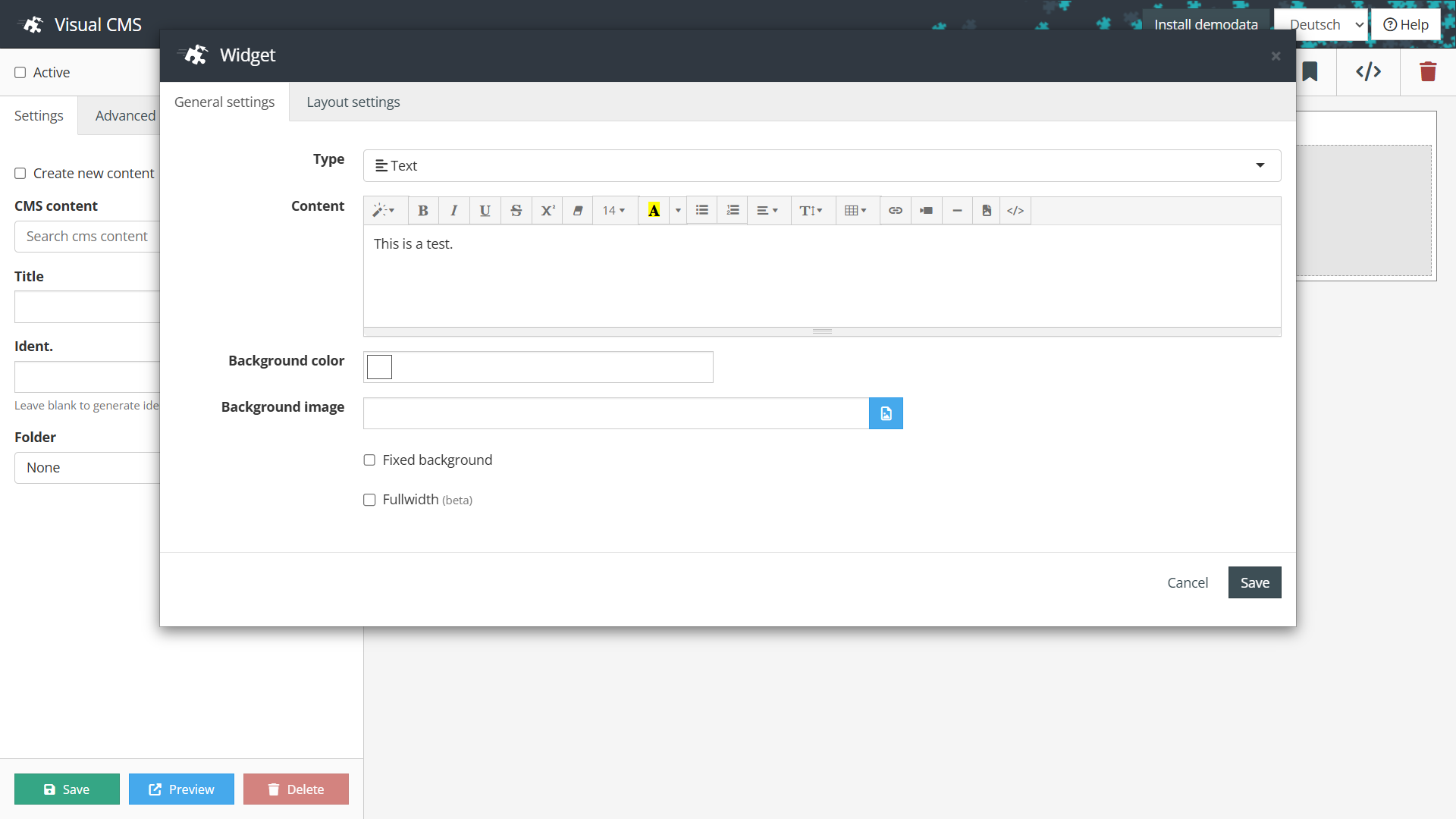 Click into field CMS-Content